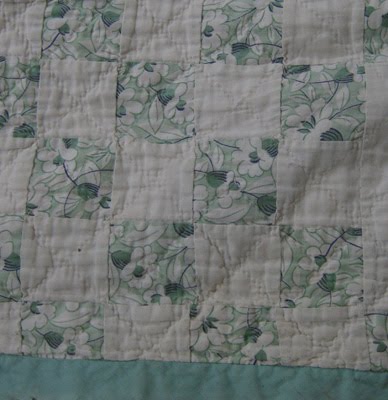I look at the quilt--a simple Irish Double Chain in green and white. I know it well. For years it had been on my parents' bed.